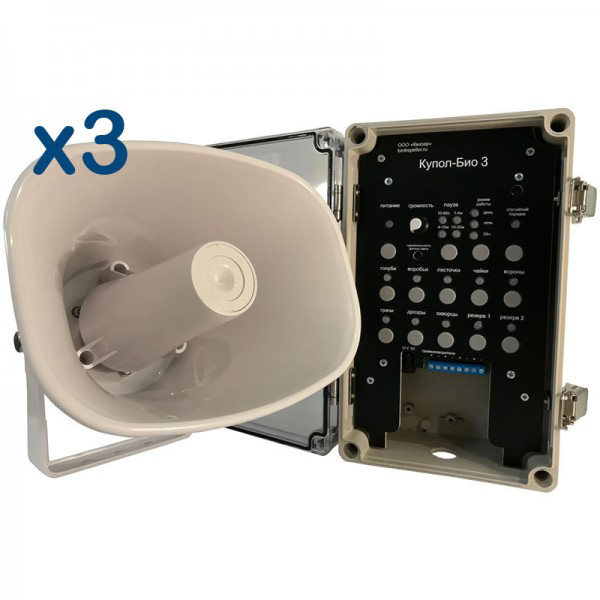 Биоакустический отпугиватель птиц «Купол-Био 3» является, пожалуй, наиболее технически совершенным и продвинутым из всех отпугивателей, представленном на отечественном и мировом рынке. Свои аналоги (как отечественные, так и зарубежные) он превосходит по всем значимым характеристикам: количеству отпугивающих сигналов, качеству их воспроизведения и громкости. К тому же, благодаря обширной библиотеке отпугивающих сигналов, прибор универсален и может применяться для отпугивания почти любых птиц.