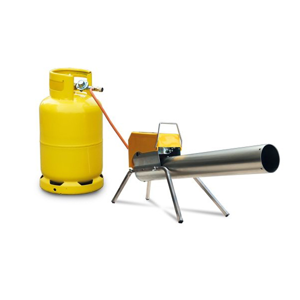 - Малое потребление пропана. Устройство потребляет газ очень экономно — 10-литрового баллона хватает, примерно, на 17000 выстрелов. При интервале 30 мин. пушка сможет работать от одного баллона практически целый год.